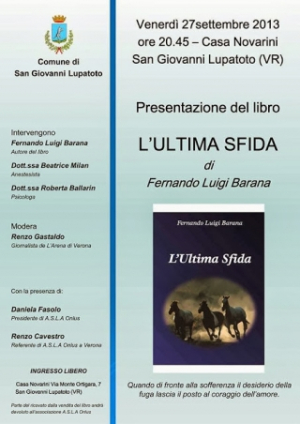 Leggi TuttoQuesta sera, 27 settembre, a Casa Novarini verrà presentato 'L'ultima sfida', un libro sulla Sla scritto da Fernando Luigi Barana. Il racconto della testimonianza di chi l'ha vissuta in famiglia e di chi, ogni giorno, lotta per sconfiggere questa malattia