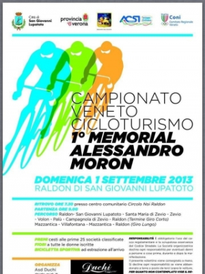 Leggi TuttoCon un grande applauso dei 500 cicloturisti in ricordo di Alessandro Moron, imprenditore e promotore del ciclismo amatoriale scomparso da pochi mesi, è iniziato il campionato veneto di cicloturismo.La manifestazione promossa dell'Assesore allo sport, organizzata dalla Duchi team con la collaborazione del Gs Raldon e patrocinata dalla provincia di Verona, dalla regione Veneto e dal Coni, rientra nel programma della 93 Sagra di Raldon