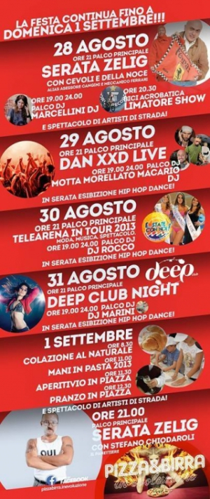 Leggi TuttoE' stata prolungata la manifestazione Pizza e Birra in Evoluzione. Nell'immagine il programma delle prossime serate.